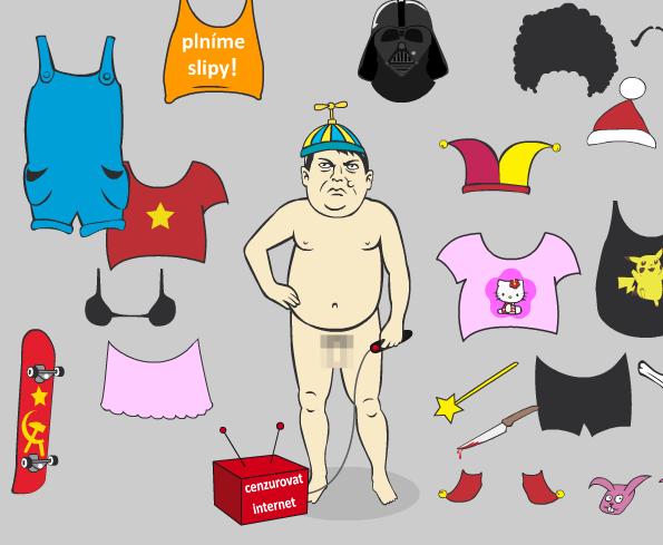Paroubkovi v úplně jednoduché hříčce můžeme obléci různá trička, kašpárkovskou čepičku, tričko s nápisem Plníme slipy, tričko s libovolným textem, do úst lze vložit bublina s vaším duchaplným dialogem a stejně tak nesmíme zapomenout i na dálkové ovládání zařízení pro cenzuru internetu, kterou ČSSD zřejmě plánuje zavést.